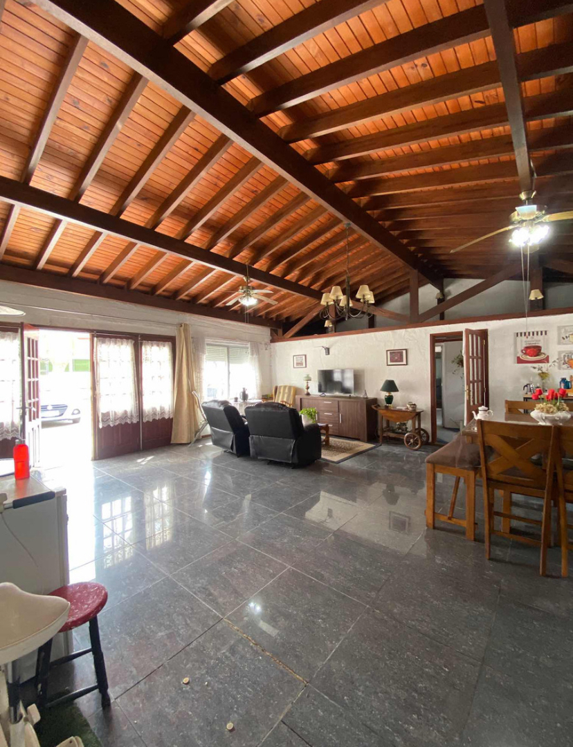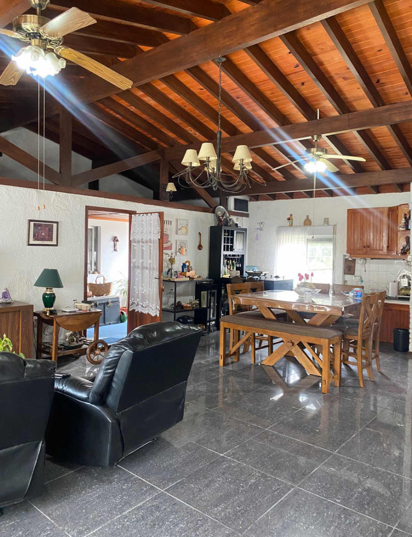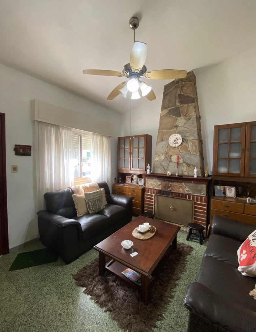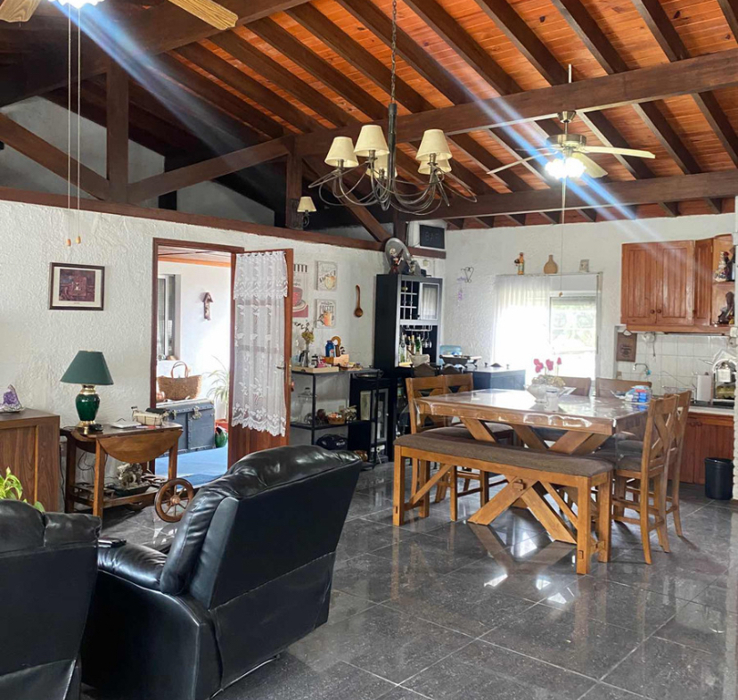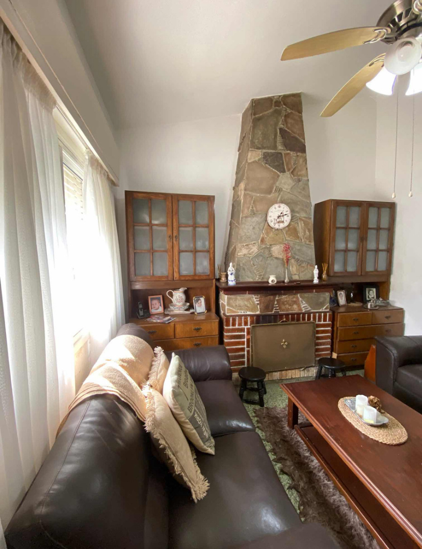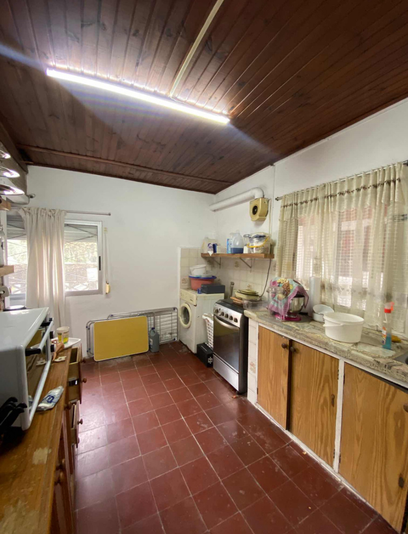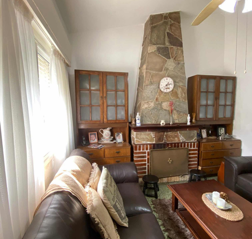 La casa principal cuenta con jardín al frente, entrada vehicular, 2 dormitorios, living comedor con estufa a leña.