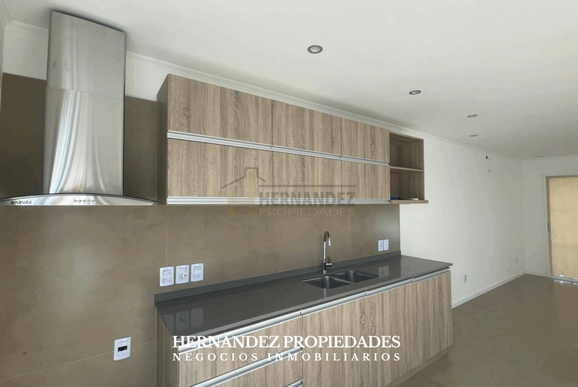 • Cocina integrada al living comedor, equipada con placares aéreos y bajo mesada.