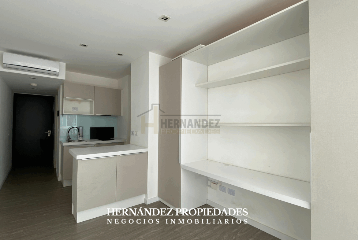 Cuenta con cocina definida, amplio baño moderno y gran espacio de guardado.