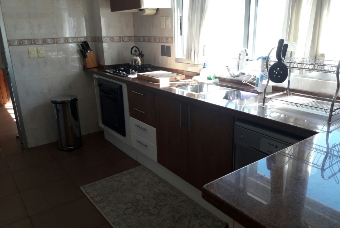 – Cocina amplia y muy comoda con placares aéreos y bajos en madera.