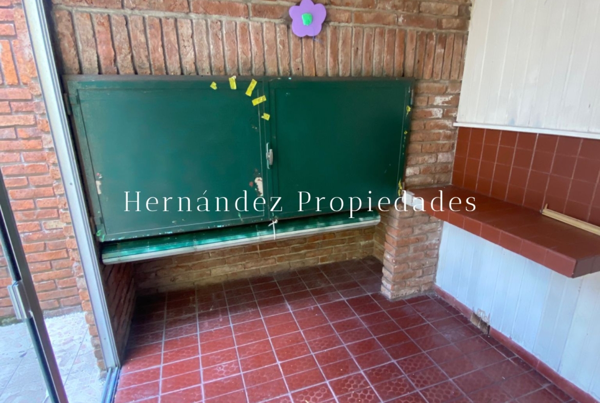 – Jardín, cochera, garage cerrado y patio.